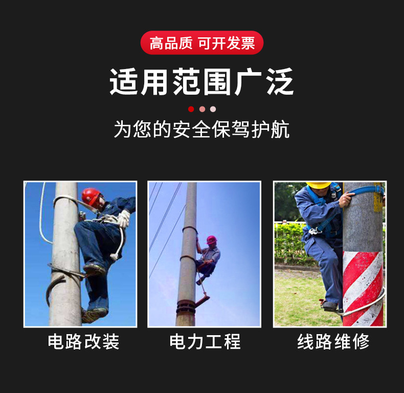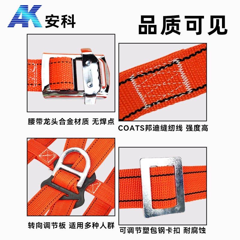 全方位高空作业安全带广泛应用于电器安装和维修等高空作业用,适用于外线电工,电信工人作业,电线维修等相似工种。全方位高空作业安全带优点:强度大、耐磨、耐用、耐霉烂、耐酸碱,简易轻便,安全适用。石家庄安科电气五点式安全带,有背带和跨带,在发生坠落时将冲击力分散在双臂,双跨和腰部,使作用在腰部的冲击力降低到 小。