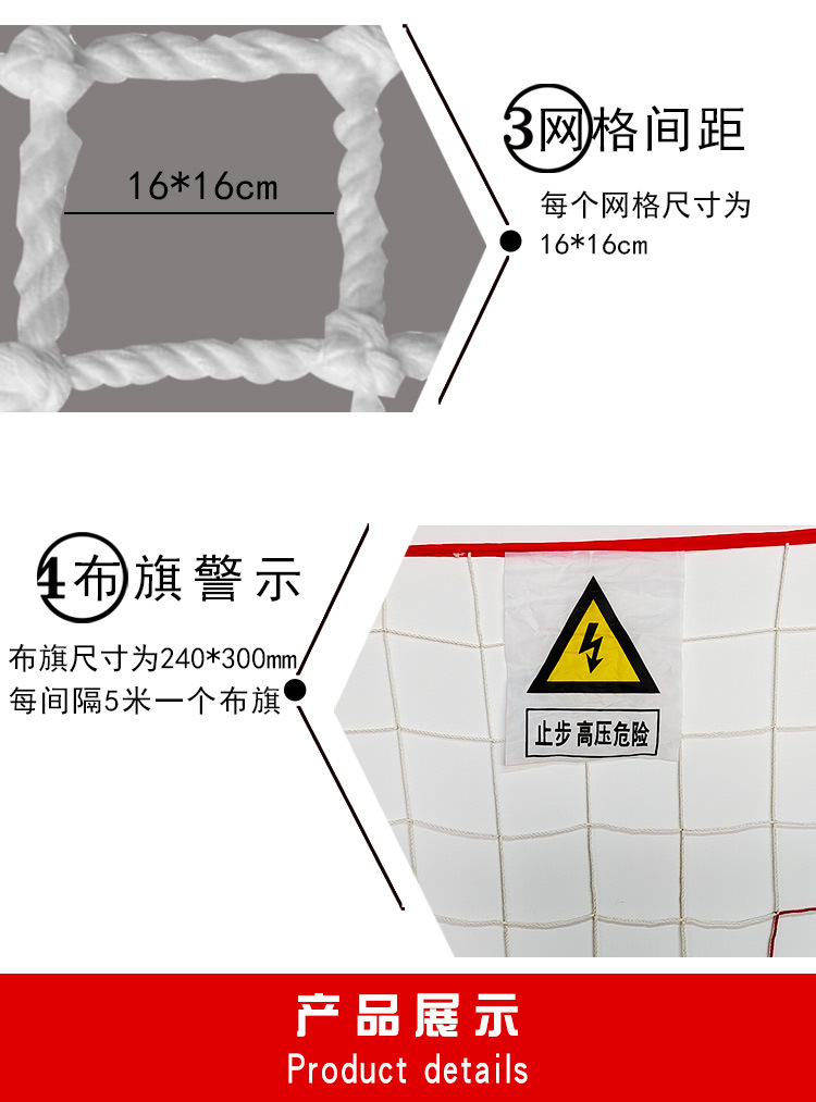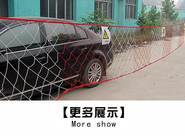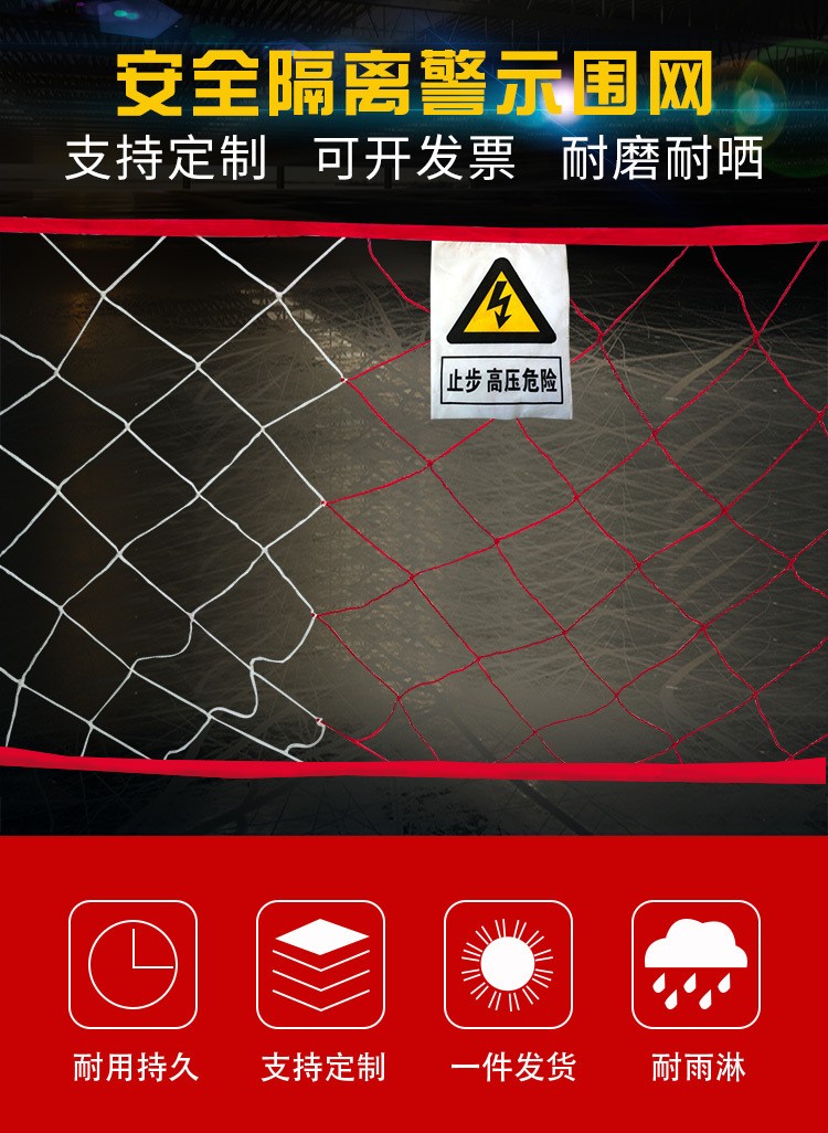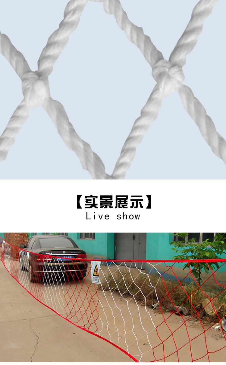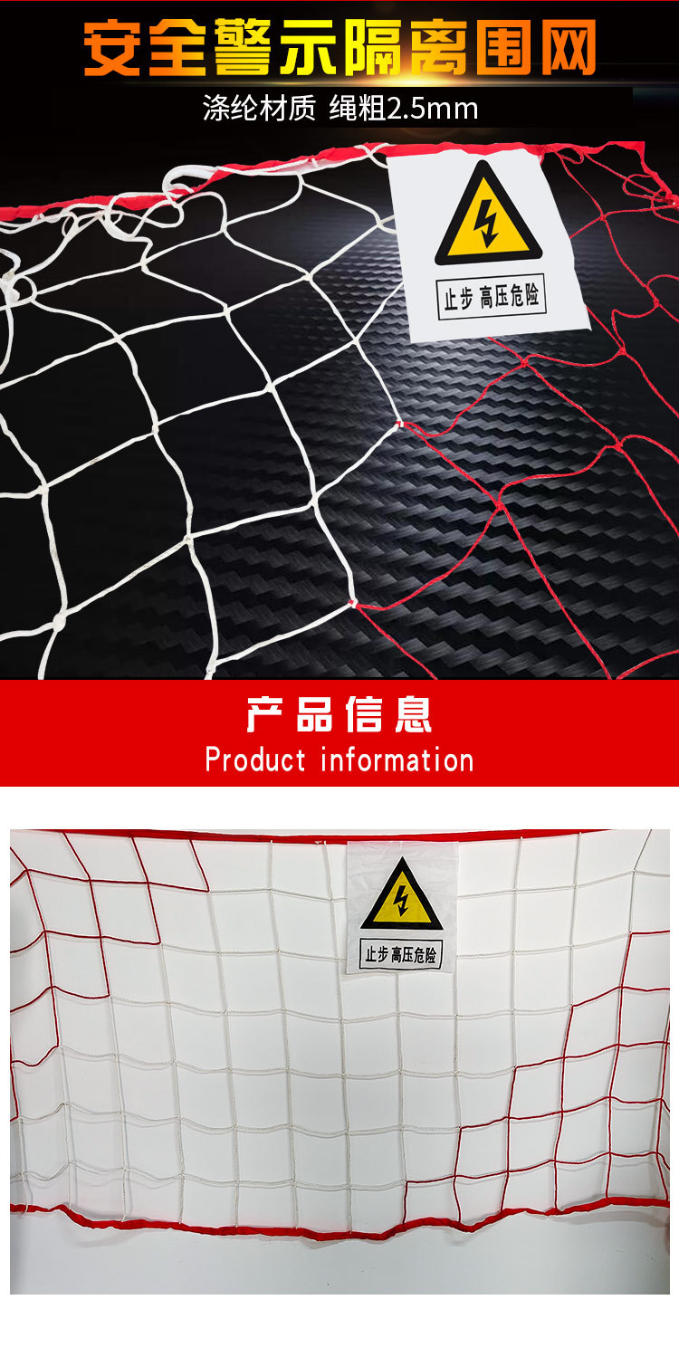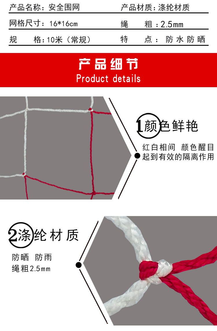 围网材质 高强度涤纶 网绳直径 4mm网目尺寸 120mm×120mm围网规格 1×10米,1×20米,1×30米,1×50米围网颜色 红白相间