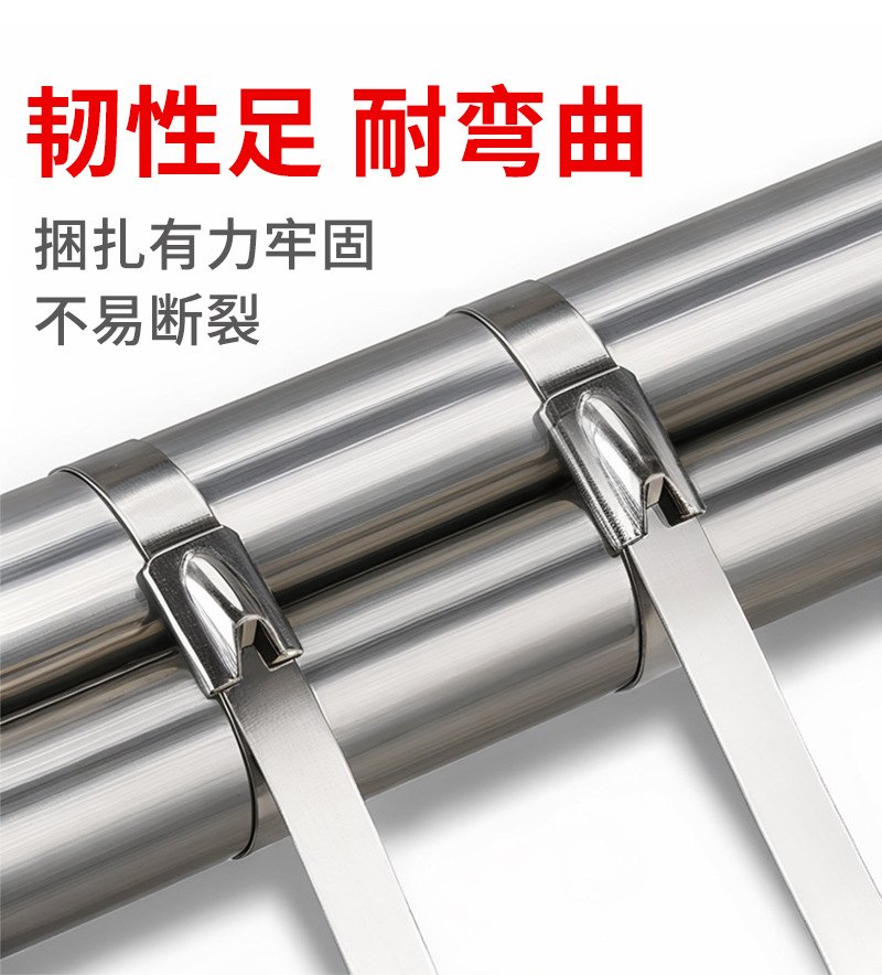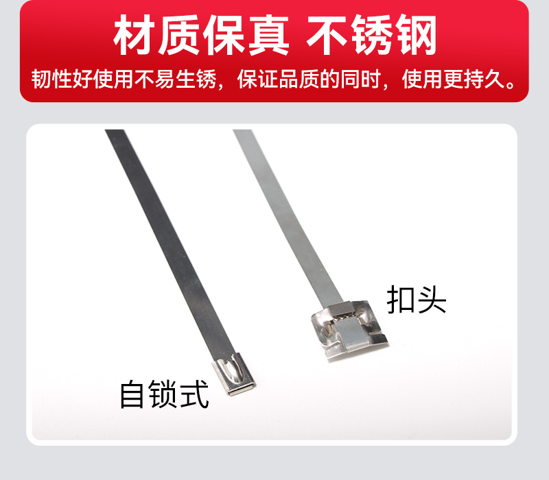 扣式不锈钢扎带,扎带厚0.3mm,宽9mm,长1m/1.2m。
