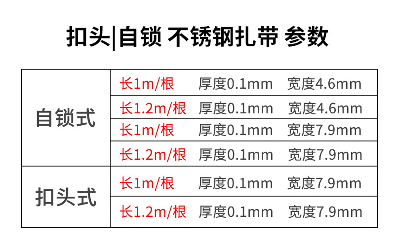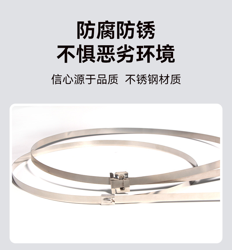 螺旋式不锈钢扎带,厚度:0.7mm,宽度:10mm,长度:1m/1.2m。