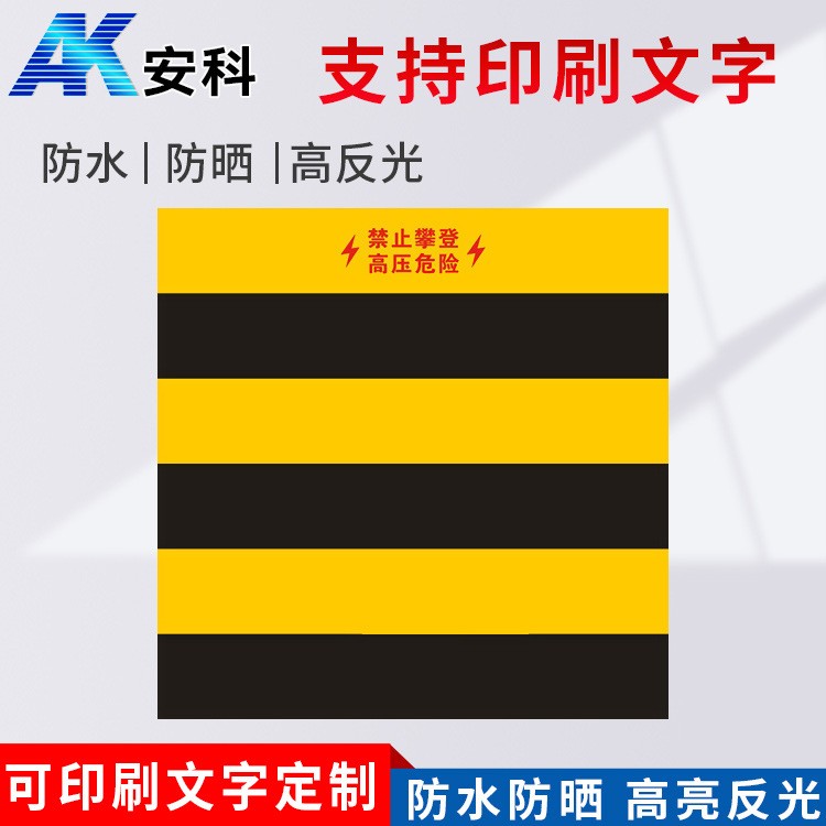 电线杆防撞反光警示贴也叫电杆防撞贴,直纹红白反光膜,黑黄警示反光贴,是采用工程级反光膜专业制作而成。安科反光警示贴克服了长期以来水泥电线杆及要杆表面只能喷刷反光漆而不能覆反光膜的缺陷,主要适用于各类电力、电信、广电部门的水泥电线杆、木杆、钢杆的表面粘贴,为广大的电力、电信、广电用户的电线杆防撞警示带来了方便以起到防撞警示的作用,同时也极大地减少断电、断线事故及生命财产损失。