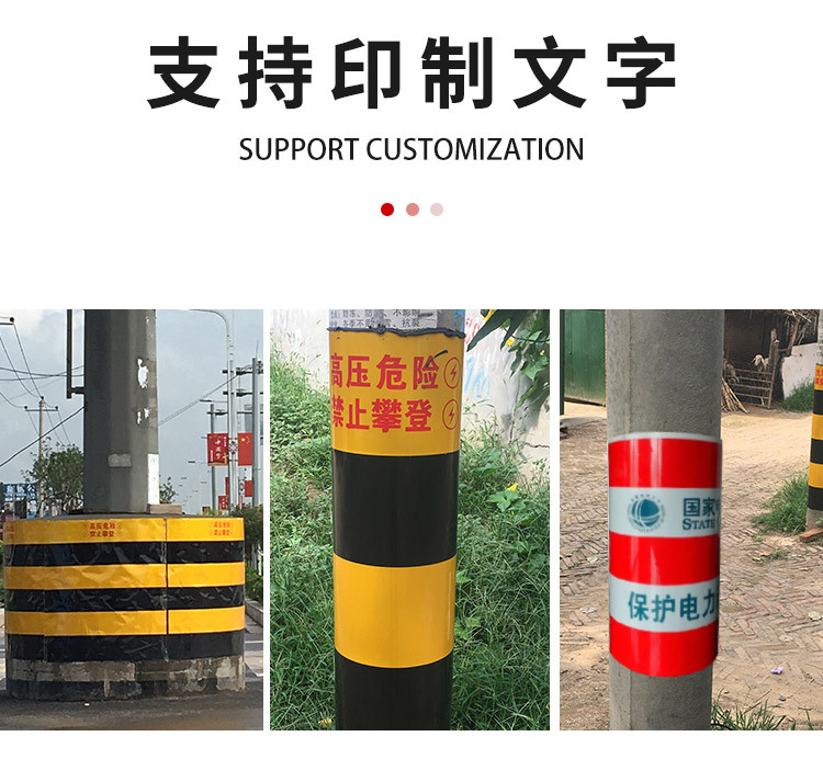 【粘贴方式】:揭开背面光面纸,贴于电线杆防撞部位,粘贴处要重合,操作简单