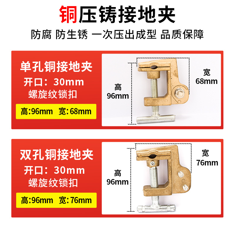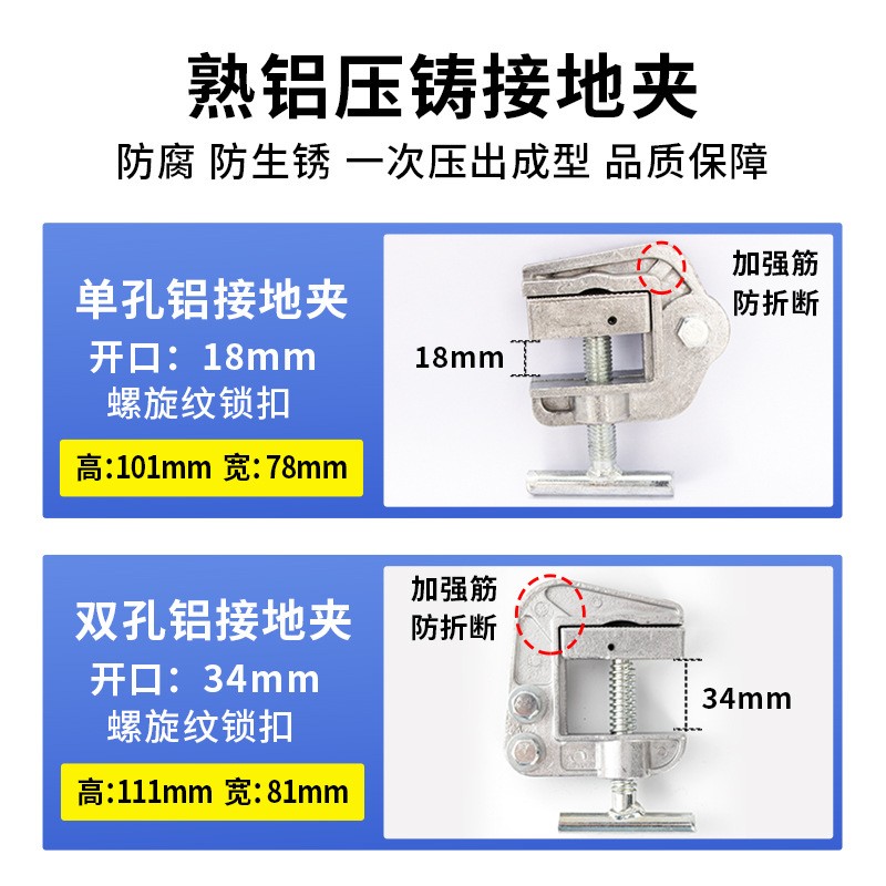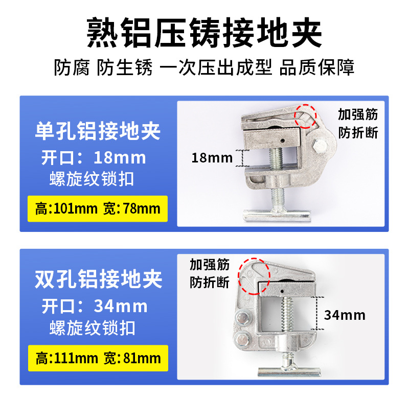 单孔接地线夹 大开口距离25mm,双孔接地线夹 大开口距离33mm。