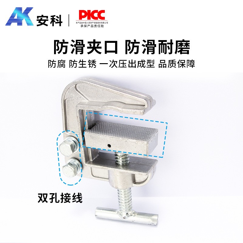 石家庄安科电气生产的接地线夹制作工艺优良,采用优质铝合金压铸成形。